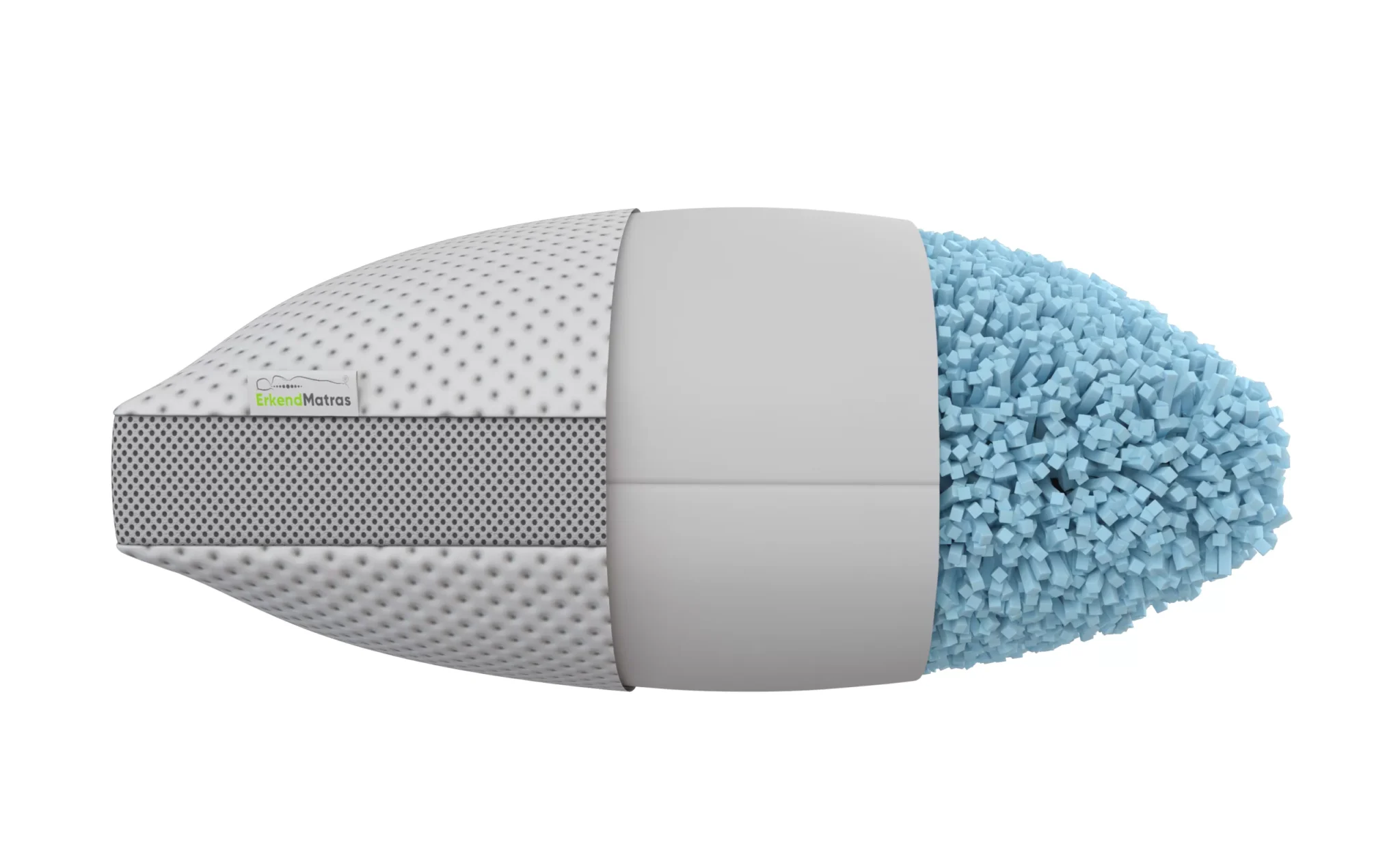 Bij ErkendMatras begrijpen we dat iedereen een unieke slaapervaring verdient. Daarom hebben we een innovatieve oplossing ontwikkeld: een ritssluiting in de binnenhoes van het aanpasbare kussen. Hiermee kun je eenvoudig een deel van de memory foam snippers uit het kussen verwijderen, zodat je de perfecte hoogte kunt creëren die bij jou past. Of je nu een buik-, zij- of rugslaper bent!