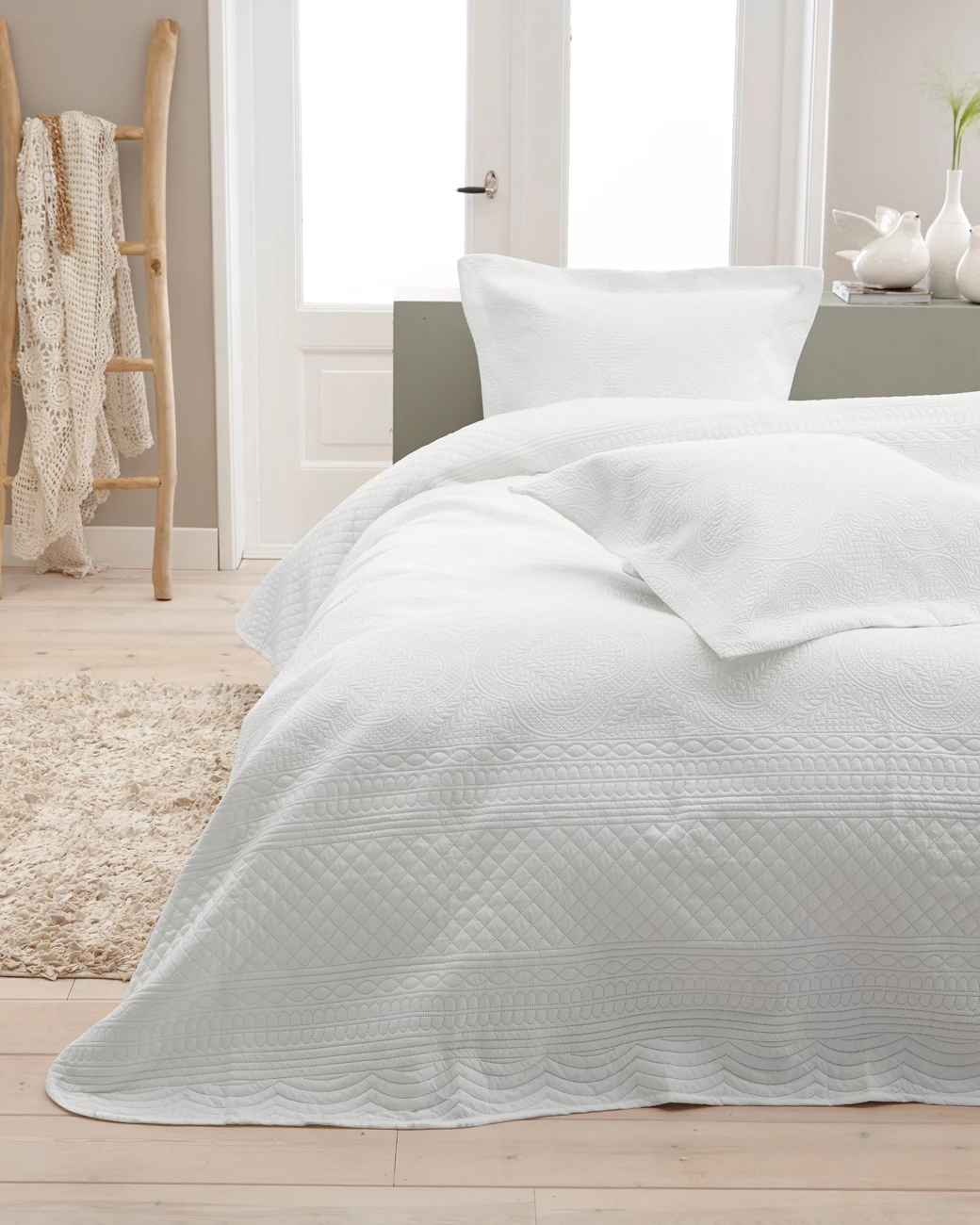 Maastricht Beddensprei WitnBescherm u beddengoed eenvoudig tegen vuil en zonlicht met de Maastricht beddensprei in de kleur wit. Deze sprei is voorzien van een sierlijk motief en heeft een neutrale kleur, waardoor u hem moeiteloos kunt combineren met andere kleuren en slaapkameraccessoires. De afmetingen van de Maastricht beddensprei zijn 260 x 250 cm.nnStijlvol en luxueus zachtnDe sprei is een stijlvolle en luxueus zachte toevoeging aan uw slaapkamer. Deze sprei is een absolute must-have voor een elegante uitstraling. Gebruik hem niet alleen ter bescherming van uw beddengoed, maar ook als decoratief element om de uitstraling van uw slaapkamer compleet te maken. De sprei is verkrijgbaar in verschillende kleuren, zodat u zeker een variant vindt die past bij jouw interieurstijl.nnGemaakt van heerlijk zacht materiaalnDeze chique sprei is vervaardigd van micropercal. Dit materiaal voelt heerlijk koel aan, is zacht en soepel, en neemt vocht goed op. Dankzij deze stof geniet u keer op keer van een comfortabele nachtrust en kunt u extra lang van uw sprei genieten.