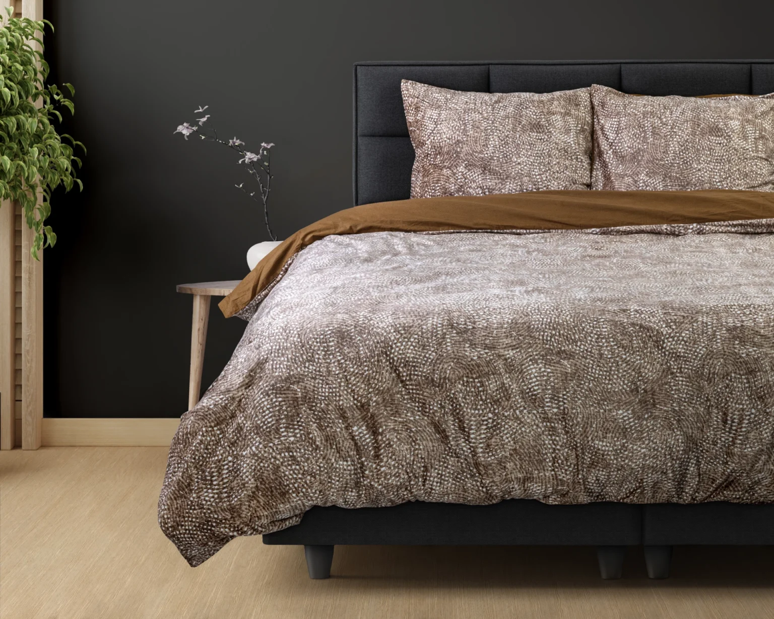 Transformeer uw slaapkamer naar een elegante en speelse omgeving met het prachtige Dekbedovertrek Deventer Aria Bruin! Dit overtrek is gemaakt van heerlijk zacht fluweel en katoen.nnElegant en comfortabel Met het elegante en comfortabele Dekbedovertrek Deventer Aria Bruin wordt uw bed direct het stralende middelpunt. Aan de voorkant heeft dit overtrek een chique patroon in prachtige kleuren, terwijl de achterkant effen zwart is. Hierdoor kunt u het overtrek aan beide zijden gebruiken. Met een totale lengte van 220 cm sluit het probleemloos af dankzij handige drukknopen.nnGemaakt van fluweel en katoen het Dekbedovertrek Deventer Aria Bruin is vervaardigd van fluweel en katoen. Door de combinatie van deze materialen voelt het overtrek niet alleen zacht en warm aan, maar geeft het ook een luxe uitstraling. Dit duurzame overtrek gaat jarenlang mee en is gemakkelijk te onderhouden.