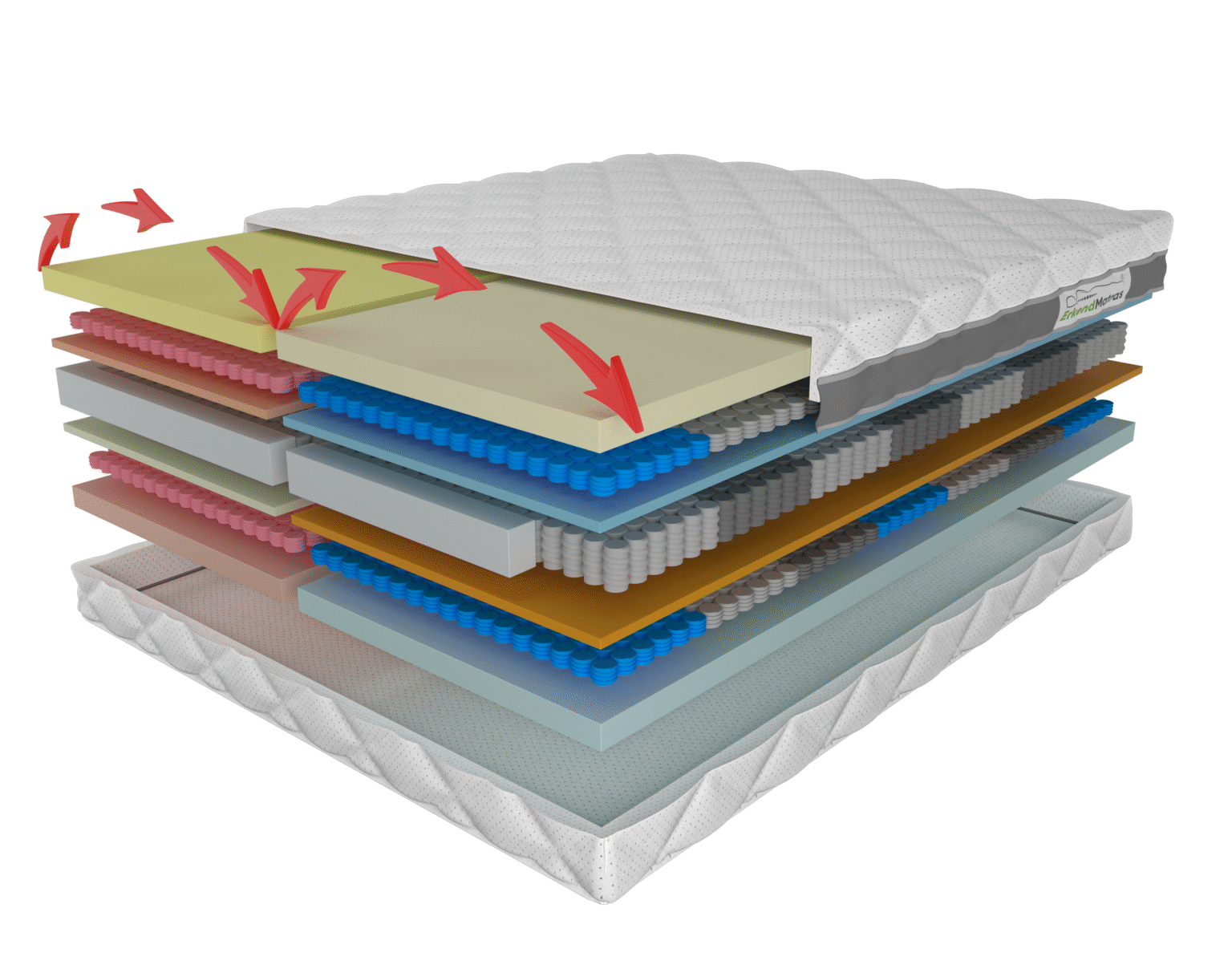 Ons 25 cm dikke ErkendMatras® wordt ontwikkeld geheel naar vorm en gewicht van uw persoonlijke en unieke lichaam en is samengesteld uit de best geteste materialen. Door gebruik te maken van verschillende soorten, hardheden en specifieke typen foam en pocketveren, is het mogelijk om een matras geheel op maat van uw persoonlijke lichaamsbouw te fabriceren. Vul eenvoudig en gemakkelijk uw lengte, gewicht, lichaamsbouw en diverse andere relevante vragen in via onderstaande knop en wij gaan voor u aan de slag.