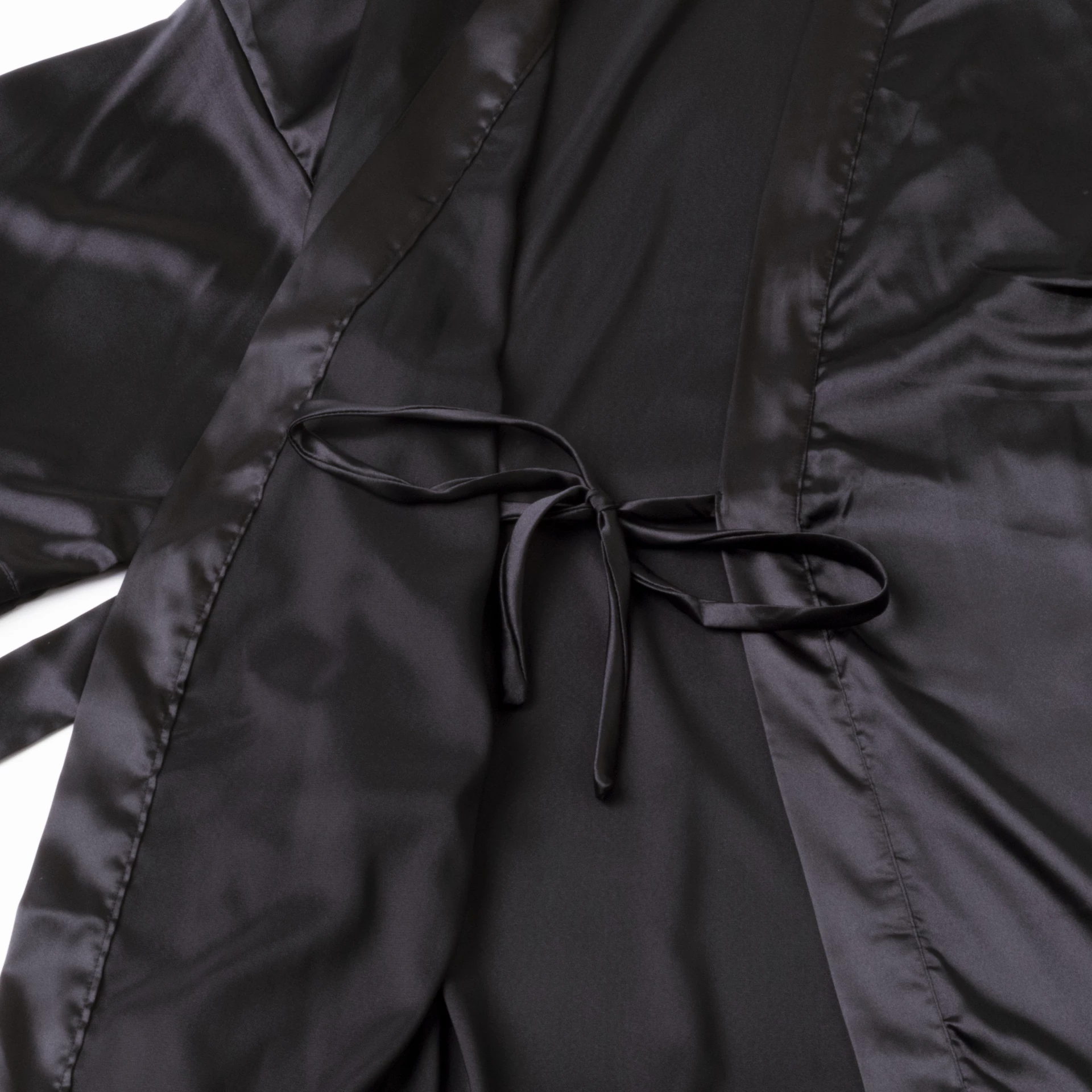 Satijnen Kimono IJmuiden ZwartnMaak kennis met onze luxueuze Satijnen kimono, het toppunt van comfort en elegantie. Met een lengte van 118 cm biedt deze kimono niet alleen de perfecte pasvorm, maar ook de ideale lengte voor een stijlvolle look en optimale bedekking. Of u nu petite of curvy bent, deze kimono omhult jouw lichaam als een tweede huid en valt tot net boven de knieën voor een vleiend silhouet.nnNiet alleen voelt deze kimono geweldig aan, maar hij is ook heerlijk zacht. Gemaakt van hoogwaardig satijn, is hij een waar genot om te dragen. Het zachte en gladde materiaal streelt uw huid en zorgt voor ultieme ontspanning na een lange dag.nPraktisch en gebruiksvriendelijk, deze kimono is geschikt voor zowel de wasmachine als de wasdroger. U kunt hem dus gemakkelijk schoonmaken en snel weer aantrekken voor u volgende comfortabele moment. Bovendien is deze kimono ook nog eens anti-huisstofmijt, waardoor u uw geen zorgen hoeft te maken over allergieën.nnIn een elegante zwarte kleur is deze Satijnen kimono niet alleen functioneel, maar ook stijlvol. Of u nu ‘s ochtends geniet van een kopje koffie op de bank of uzelf verwent na een warm bad, deze kimono biedt de ultieme luxe ervaring.nOntdek het ultieme comfort, de perfecte pasvorm en de ideale lengte van 118 cm van onze Satijnen kimono. Geniet van heerlijke zachtheid, praktisch gemak en stijl, allemaal verpakt in één geweldig kledingstuk.