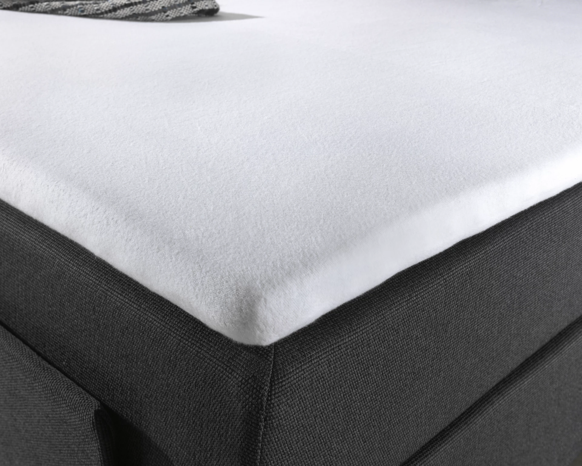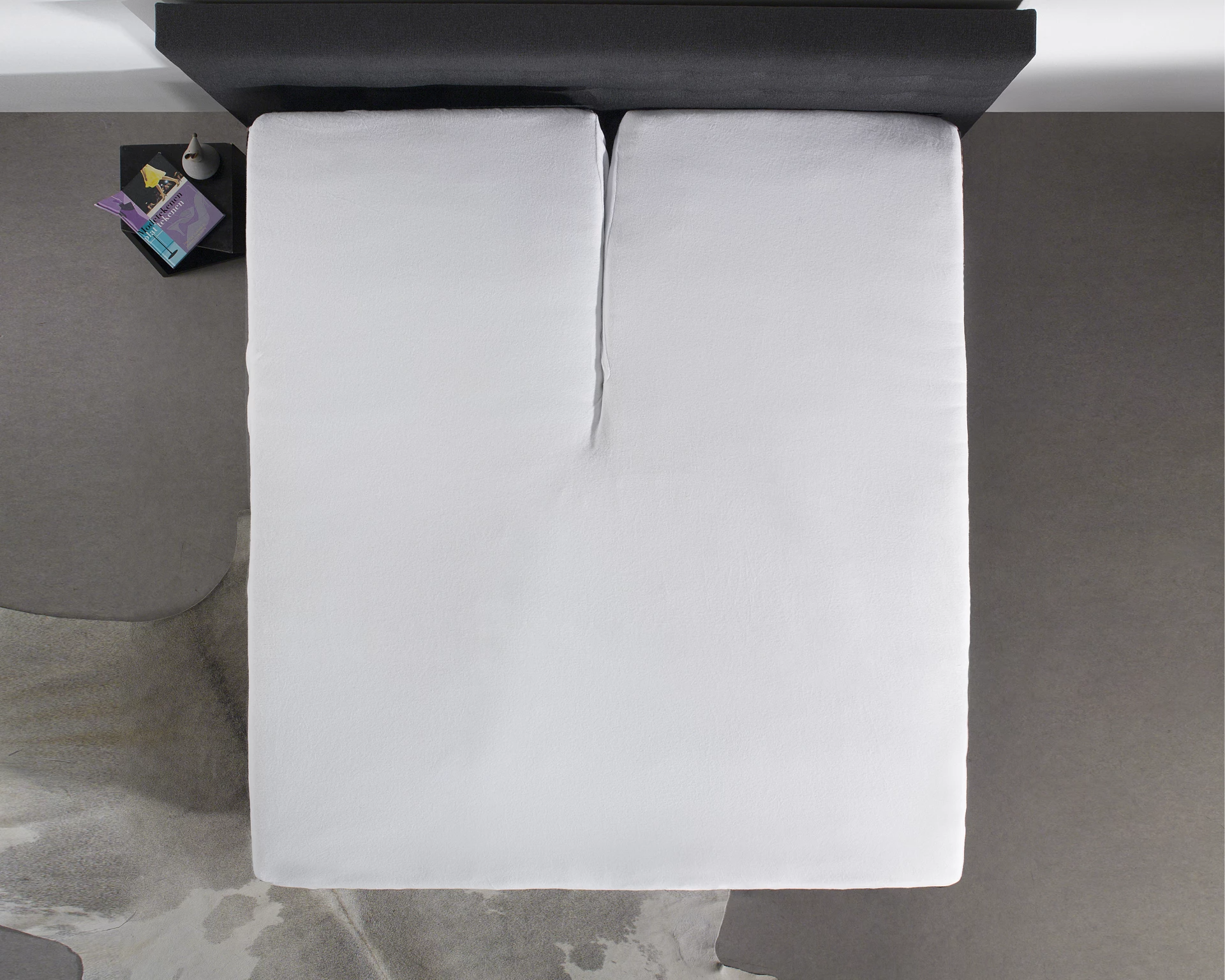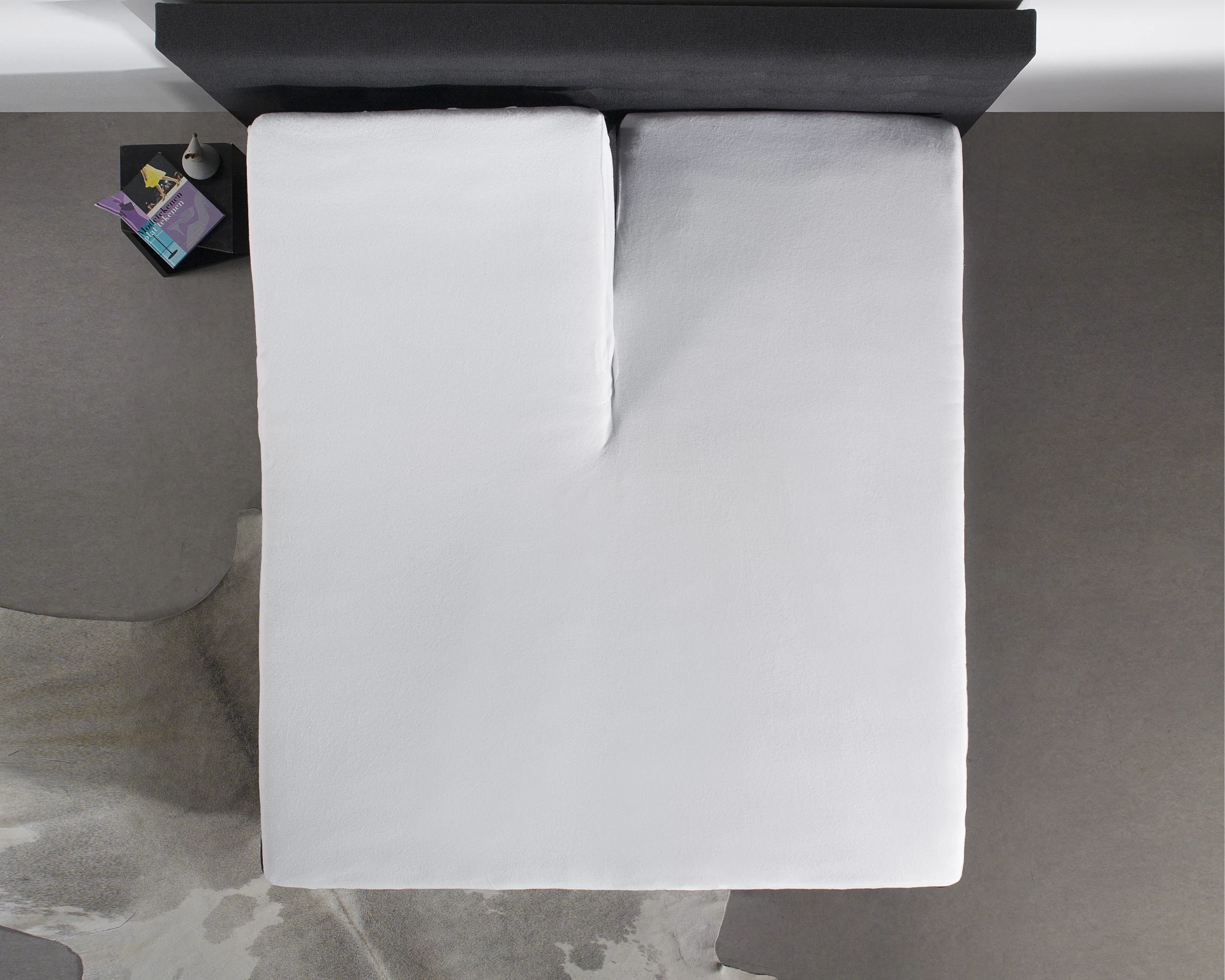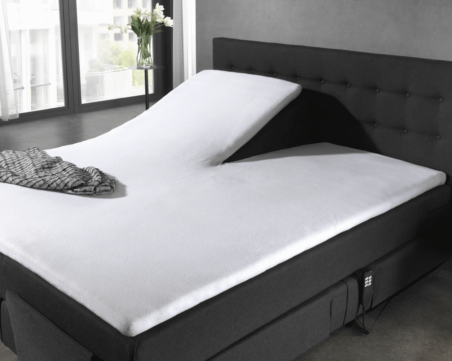 nDit splittopper molton hoeslaken van Dreamhouse houdt vuil, stof en bacteriën tegen zodat je splitmatras langer schoon en fris blijft! Dit hoeslaken is vervaardigd van 80% katoen en 20% polyester.nnJe splittopper molton blijft langer frisnMet dit splittopper molton hoeslaken van Dreamhouse blijft je splittopdekmatras langer fris. Het hoeslaken zorgt voor veel comfort in bed, dankzij de perfecte aansluiting op je topmatrassen. De molton werkt direct als matrasbeschermer en het hoofdeinde kan apart van elkaar blijven bewegen, zowel bij boxsprings als bij verstelbare lattenbodems. Dit hoeslaken heeft een hoekhoogte van 15 cm en een split die 90-100 cm lang is.nnVervaardigd van katoen en polyesternDit Dreamhouse splittopper molton hoeslaken is vervaardigd van katoen en polyester. Deze combinatie zorgt ervoor dat het hoeslaken heerlijk aanvoelt. Dankzij de antiallergische werking is het laken ondoordringbaar voor huisstofmijten, dus perfect voor mensen met een allergie.nnProductspecificatiesn