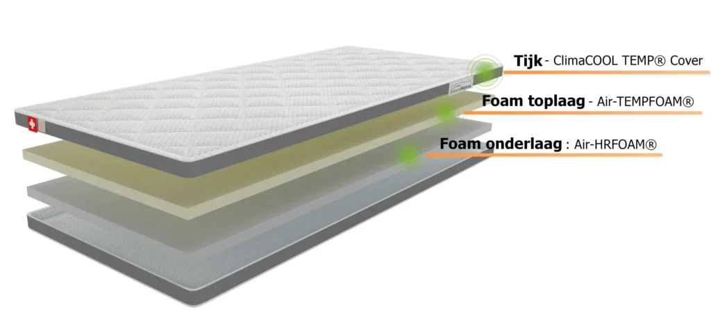 Het Air-TEMPFOAM is materiaal wat reageert op lichaamswarmte en zich volledig aanpast aan de contouren en het gewicht van uw lichaam, ook als u beweegt.