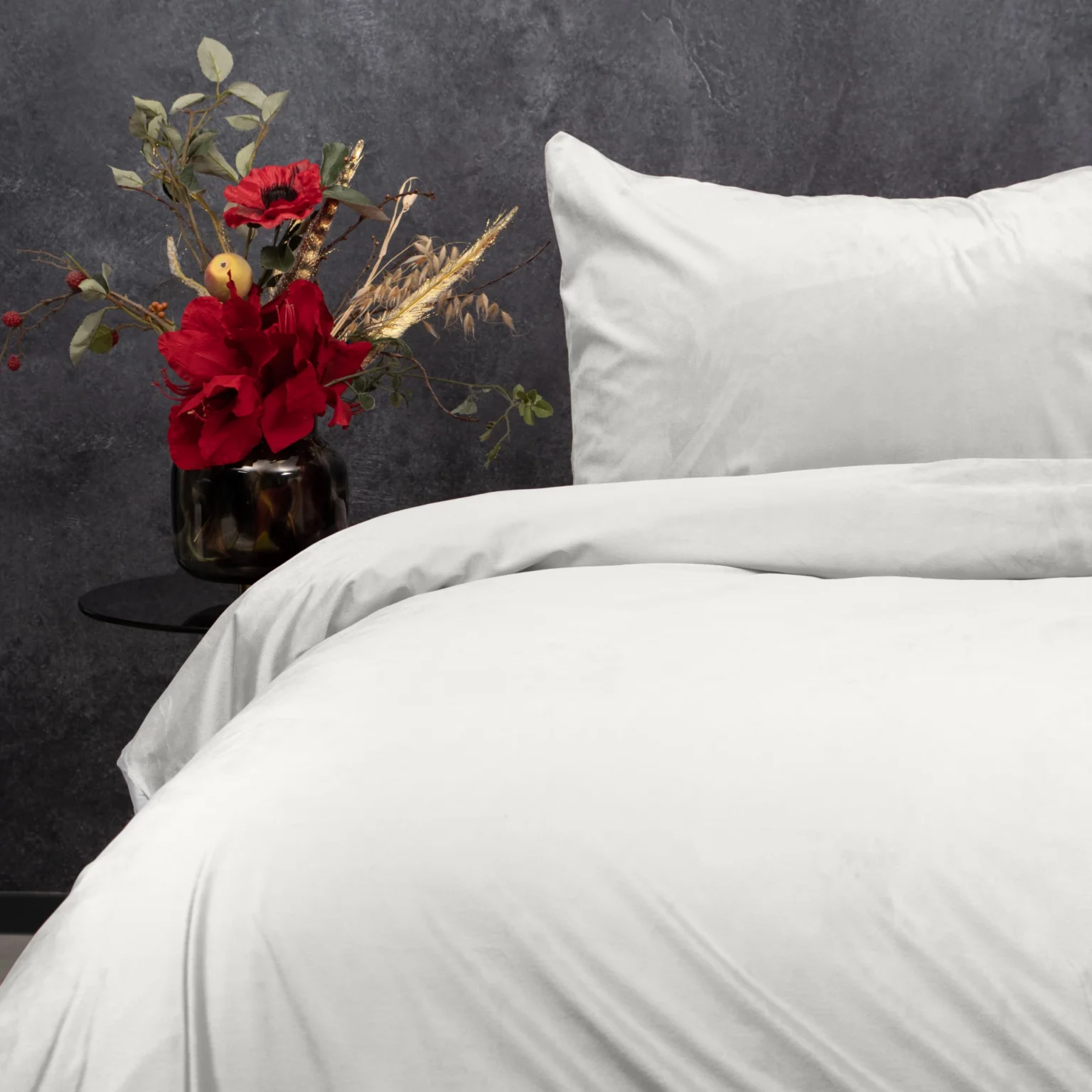 Dekbedovertrek Amersfoort WitnnIn een wereld vol stress en hectiek verlangen we allemaal naar een oase van rust en comfort. Het Amersfoort dekbed van velvet materiaal in de prachtige kleur wit biedt precies dat – een zachte en luxueuze ontsnapping naar een dromerige slaapervaring. Met zijn weelderige textuur en verfijnde uitstraling is dit dekbed een waar genot voor de zintuigen.nnDekbedovertrek Amersfoort van hoogwaardig materiaal nnHet Amersfoort dekbed is vervaardigd van hoogwaardig velvet materiaal, waardoor het een ongeëvenaard gevoel van zachtheid en comfort biedt. De delicate aanraking van dit luxueuze textiel geeft u het gevoel alsof u in een wolk van pure verwennerij slaapt. Het fluweelzachte oppervlak streelt zachtjes uw huid en creëert een gevoel van luxe dat u elke nacht omhult.nnVoordelen Dekbedovertrek Amersfoort nnNaast zijn zintuiglijke genoegens biedt het Amersfoort dekbed ook praktische voordelen. Dankzij het hoogwaardige materiaal is het dekbed duurzaam en gemakkelijk te onderhouden. Het behoudt zijn prachtige kleur en vorm, zelfs na vele nachten van zalig slapen. Het Amersfoort dekbed is tevens hypoallergeen, waardoor het geschikt is voor mensen met allergieën en gevoelige huid.nnHet Amersfoort dekbed van velvet materiaal in de kleur wit is niet alleen een dekbed, maar een investering in uw welzijn. Het brengt de perfecte balans tussen elegantie en comfort in uw slaapkamer. Dompel uzelf onder in de weelderige zachtheid en geniet van een rustgevende slaapervaring als nooit tevoren.